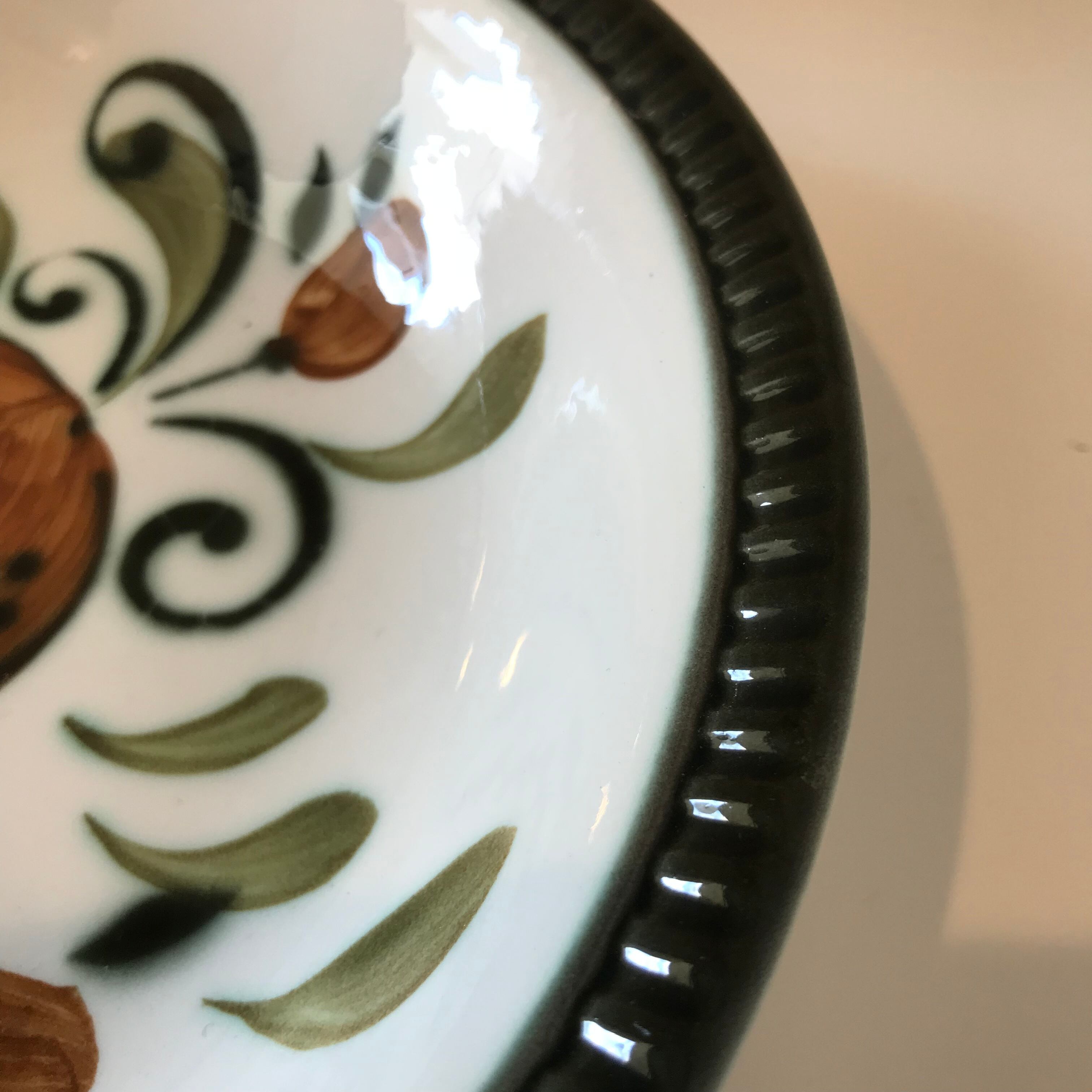釉薬のかかり具合やペイントの加減で色や柄が濃かったり薄かったりムラになっているように見えたりすることがありますが、これもBOCHの陶器の特徴のひとつです。