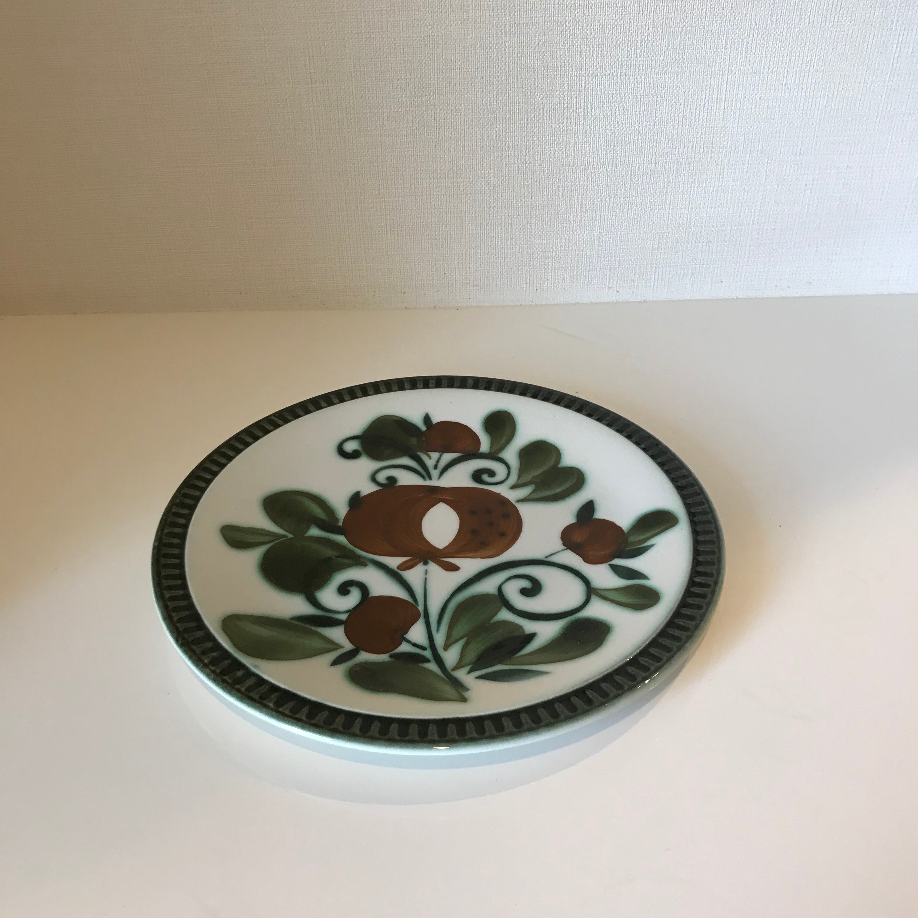 アイボリー色の地にグリーンとブラウンのコンビネーションが絶妙のざくろ柄は全てハンドペインティングで、見ているだけで何だか和みます。