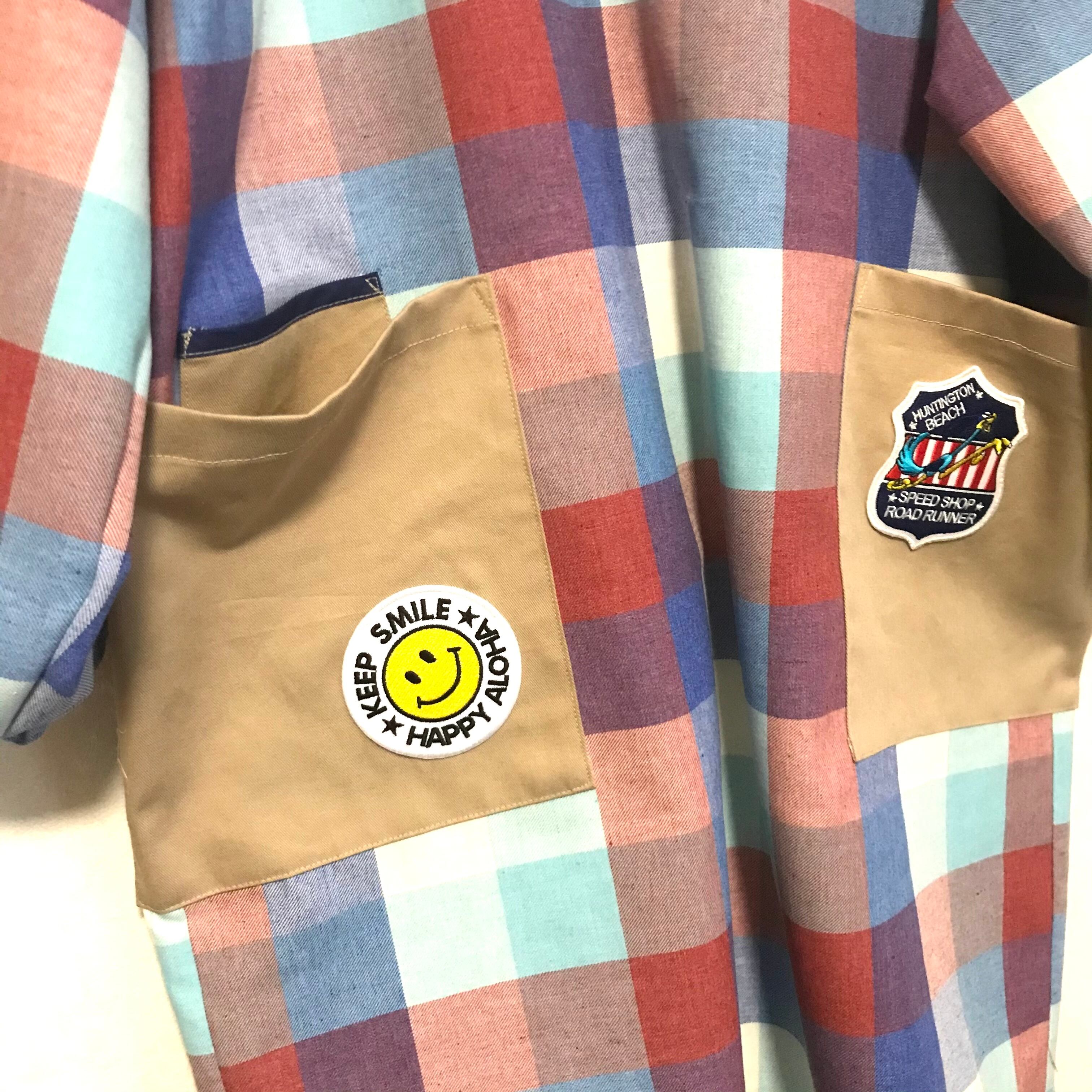 USAワッペン割烹着スタイルの保育士エプロン